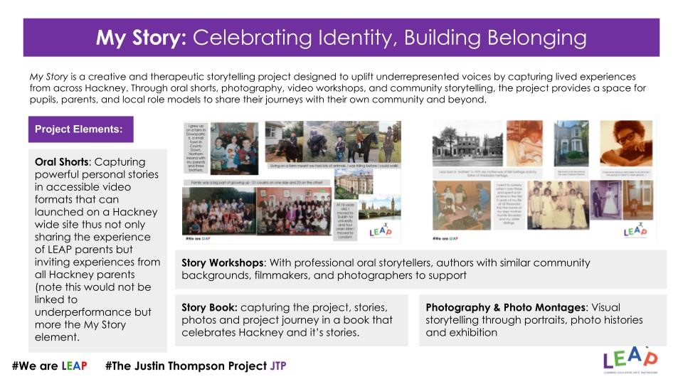 A creative storytelling programme, oral shorts, photography, video workshops and community events, amplifying lived experiences from across Hackney. Outputs include an online gallery and a Story Book that captures journeys, portraits and place.
